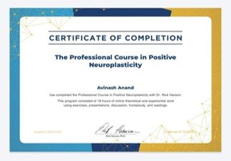 ✔ Certified Positive Neuroplasticity Trainer (Dr. Rick Hanson)